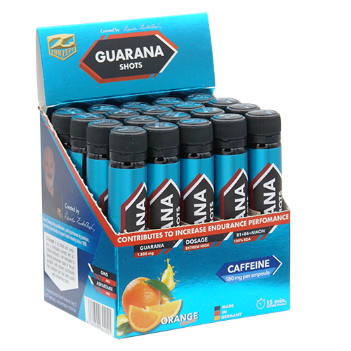 Na rozdiel od kávy, kde je kofeín voľný, však kofeín v guarane je viazaný na tanníny. Preto sa uvoľňuje pomalšie a umožňuje tak veľkú výhodu – dlhodobejší účinok kofeínu. V Guarane 1 800 záberov sme použili najvyššiu kvalitu guarany pre vysoké hladiny kofeínu a najlepší chuť. Tekutá forma umožňuje rýchlejší nástup ako tablety alebo kapsuly, ale bez toho, aby to ovplyvnilo dlhodobejší účinok. S 1 800 mg silne koncentrovaného extraktu guarany získate jednu z najvyšších dávok na trhu. 180 mg kofeínu s dlhodobejším účinkom zodpovedá 2-3 šálkam filtrovanej kávy.