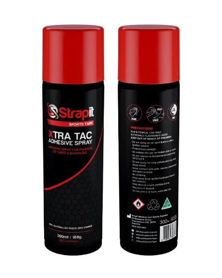 Strapit XTRA-TAC 300 ml je profesionálny lepiaci sprej, špeciálne navrhnutý na bezpečnú a dlhodobú fixáciu tejpov. Vyrobený v Austrálii na základe výskumu a skúseností tímu fyzioterapeutov, tento produkt vyniká účinnosťou a vysokou kvalitou.